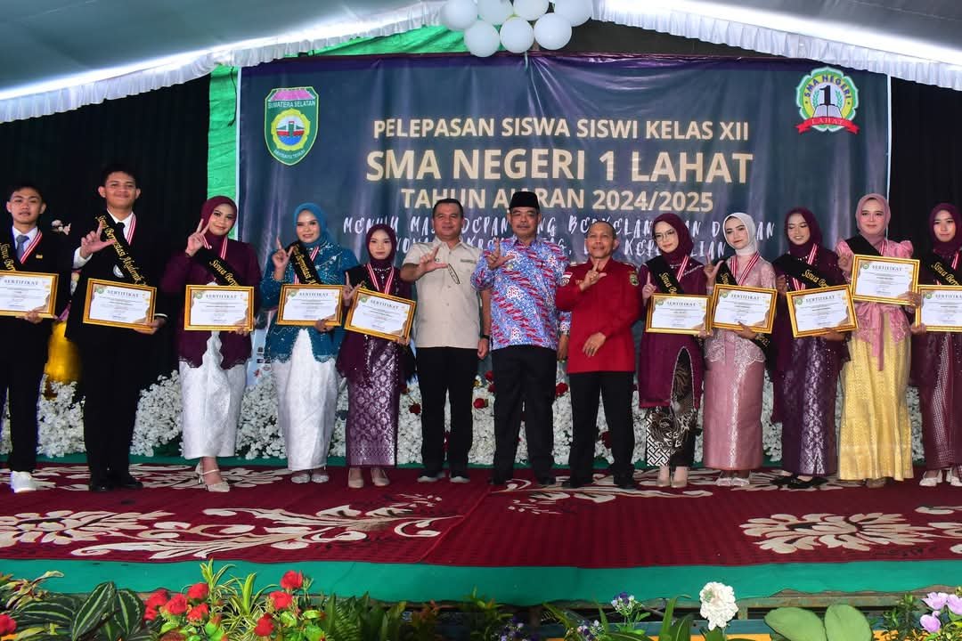 Tebarkan – Lahat – Bupati Lahat H. Bursah Zarnubi. SE menghadiri acara pelepasan siswa kelas XII angkatan LXV di SMA N 1 Lahat dengan tema menuju masa depan yang berkelanjutan dengan inovasi kreasi dan kepedulian, 8/5/2025.