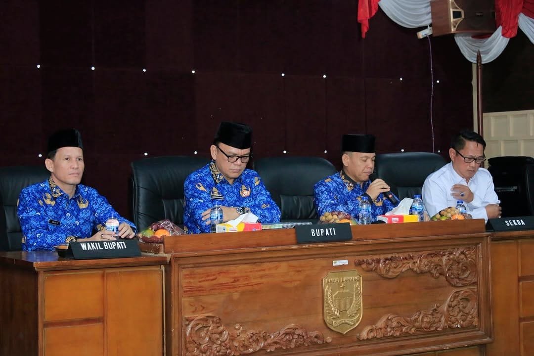 TEBARKAN – EMPAT LAWANG – Bupati Empat Lawang Dr. H. Joncik Muhammad, S.Si., S.H., M.H., M.M. memimpin langsung rapat koordinasi dan konsolidasi bersama seluruh Kepala OPD, Kepala Bagian, dan para Camat se-Kabupaten Empat Lawang, yang berlangsung di Ruang Rapat Madani, Rabu (18/06/2025).