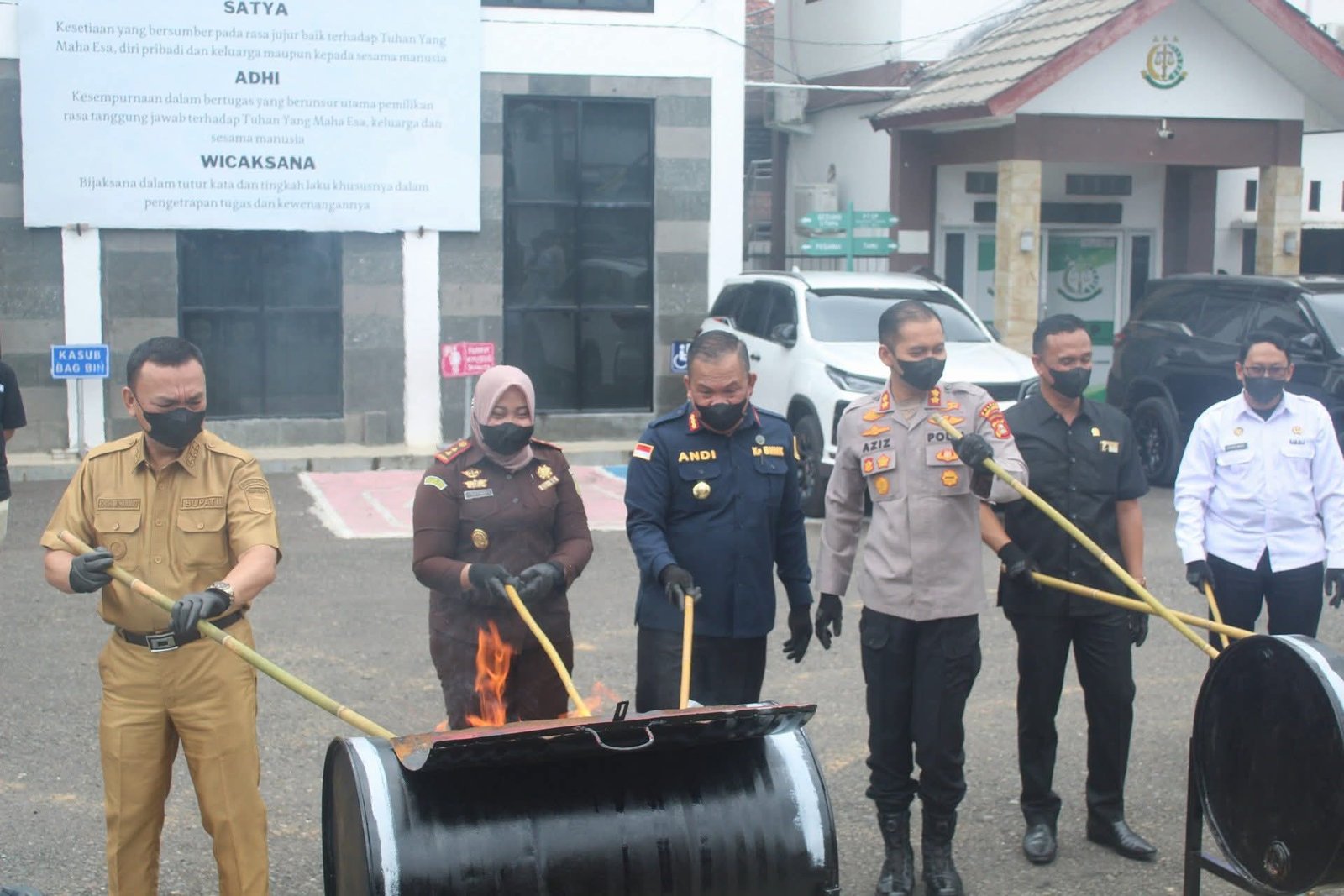 Sementara itu, Bupati Empat Lawang H. Joncik Muhammad menyampaikan bahwa kegiatan pemusnahan barang bukti ini diharapkan menjadi pembelajaran bagi seluruh masyarakat.