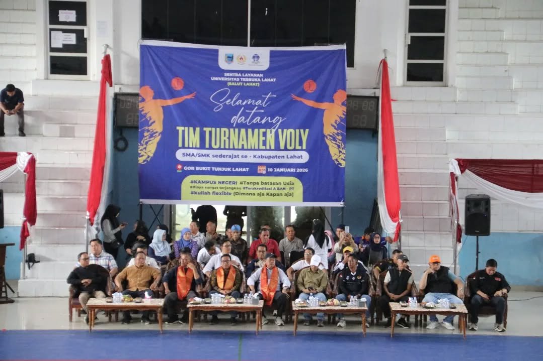 TEBARKAN – LAHAT – Turnamen Bola Voli SMA/SMK Sederajat se-Kabupaten Lahat resmi dibuka oleh Bupati Lahat, Bursah Zarnubi melalui pukulan pertama sebagai tanda dimulainya pertandingan. Kegiatan tersebut dilaksanakan pada Sabtu, (10/01/2026 ), bertempat di Gedung Olahraga (GOR) Bukit Tunjuk, Lahat.