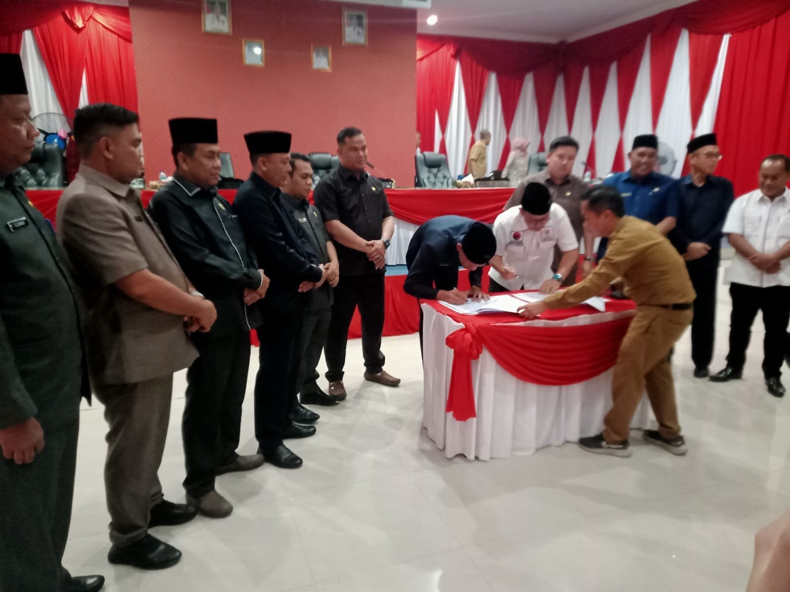 Rapat paripurna berlangsung dengan lancar serta ditutup dengan penandatanganan kedua nota kesepakatan oleh Ketua DPRD dan Wakil Bupati Muratara, disaksikan seluruh peserta rapat. (Adv).