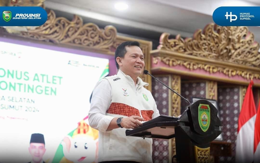 TEBARKAN.COM – PALEMBANG – Penjabat (Pj) Gubernur Sumsel Elen Setiadi memberikan apresiasi berupa bonus kepada para atlet dan pelatih Provinsi Sumsel yang telah berjuang meraih prestasi pada ajang Pekan Olahraga Nasional (PON) XXI Aceh – Sumut 2024.