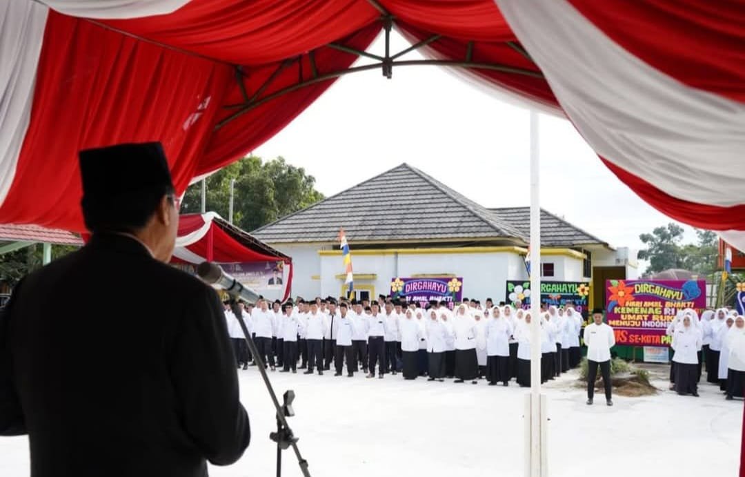 TEBARKAN.COM – PAGAR ALAM – Pj Wali Kota Pagar Alam Nelson Firdaus, bertindak sebagai Inspektur Upacara sekaligus membacakan amanat dari Menteri Agama Republik Indonesia Nasaruddin Umar pada pelaksanaan Upacara Memperingati Hari Amal Bakti ke-79 Tahun 2025, di halaman kantor Kementerian Agama Kota Pagar Alam, Jum’at (3/1/2025).