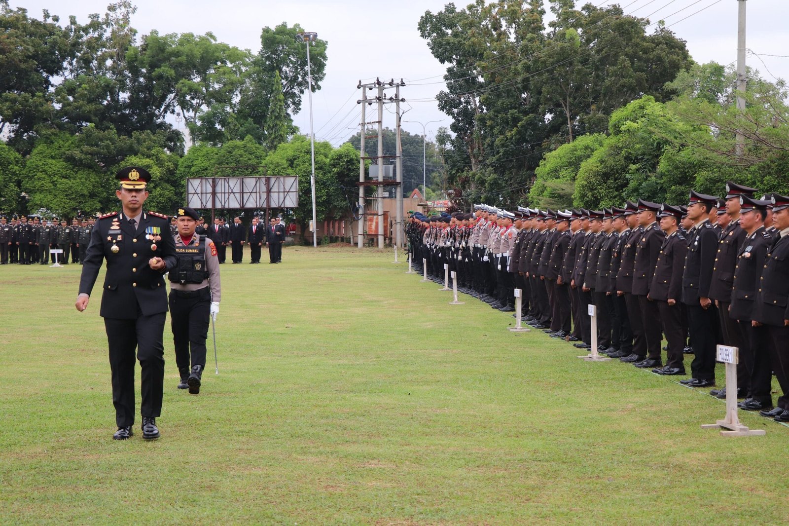 Upacara Hari Bhayangkara Ke-79 Tahun 2025, mengusung tema, “Polri untuk Masyarakat”, dihadiri juga, Wakapolres, Kompol Hendri SH, para PJU Polres, para Kapolsek jajaran beserta seluruh personel Polres Mura.