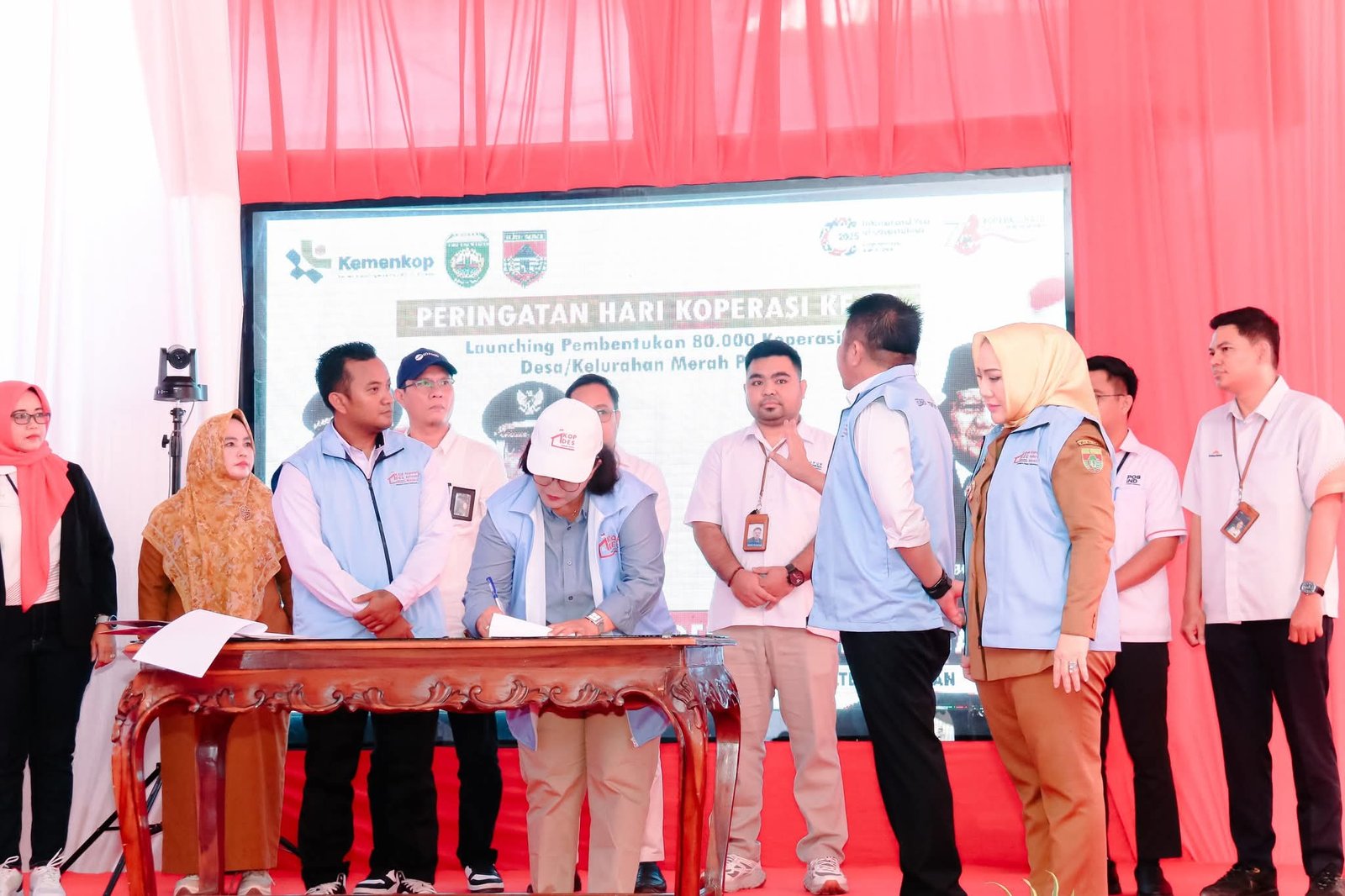 Peringatan Hari Koperasi ke-78 sekaligus peluncuran nasional pembentukan 80.000 Koperasi Merah Putih Desa/Kelurahan oleh Presiden RI Prabowo Subianto secara virtual melalui Zoom Meeting di Desa Mangun Harjo, Kecamatan Purwodadi, Kabupaten Musi Rawas, Senin (21/7/2025).