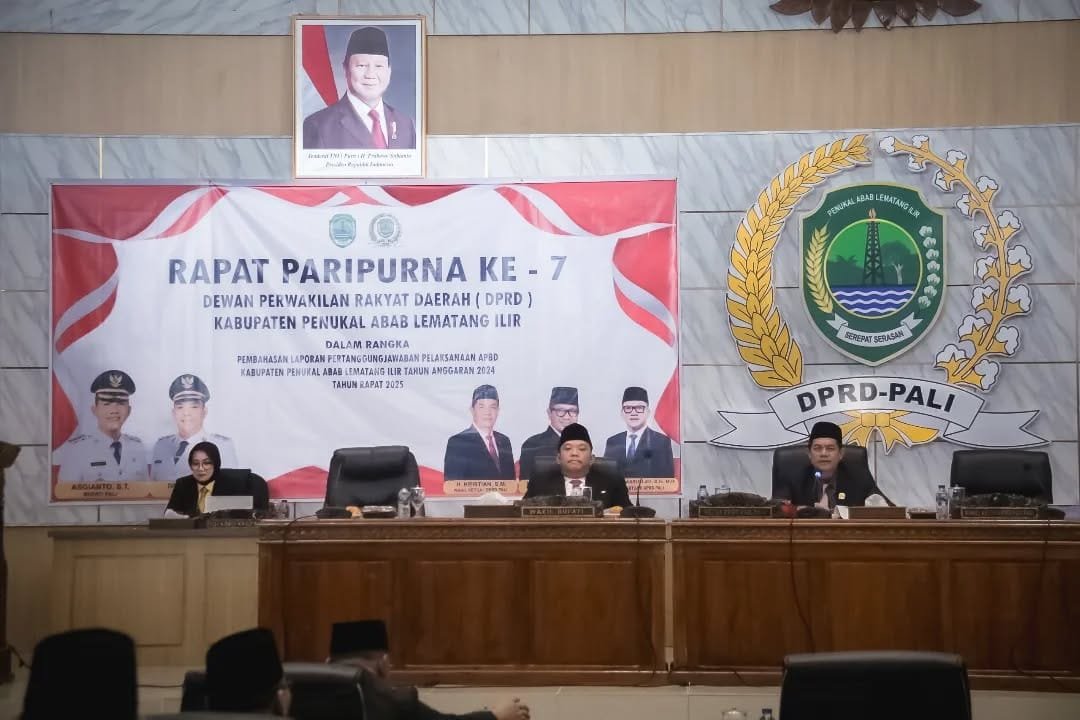 TEBARKAN – PALI – Rapat Paripurna Dewan Perwakilan Rakyat Daerah ( DPRD) Kabupaten Penukal Abab Lematang Ilir (Pali) Ke-Tujuh (7) tentang Pembahasan Laporan Pertanggungjawaban (LKPJ) Pelaksanaan Anggaran Pendapatan Belanja Daerah (APBD) Kabupaten Pali Tahun 2024 pada rapat tahun 2025, Selasa ( 17/06/2025).