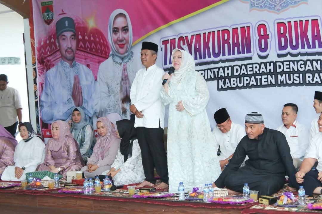 Bupati Musi Rawas, Hj. Ratna Machmud, menyampaikan bahwa tasyakuran dan buka puasa bersama ini merupakan bentuk rasa syukur kepada Allah SWT.