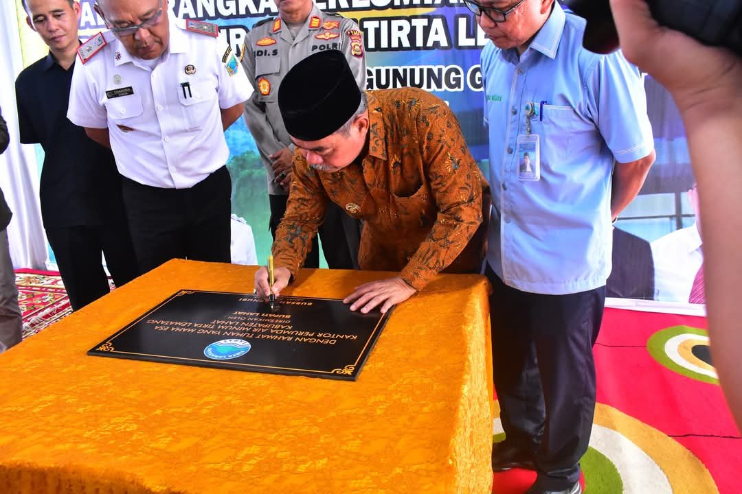 TEBARKAN – LAHAT – Bupati Lahat H. Bursah Zarnubi. SE menghadiri peresmian Perusahaan Umum Daerah (Perumda) Tirta Lematang Lahat , kantor pusat barunya di Gunung Gajah, Lahat (7/5/25).
