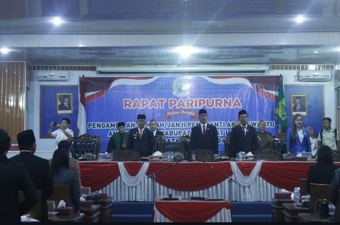 EMPAT LAWANG – TEBARKAN – Rapat Paripurna Dewan Perwakilan Rakyat Daerah (DPRD) Kabupaten Empat Lawang dengan agenda pengambilan Sumpah/Janji Pengganti Antar Waktu (PAW) anggota DPRD sisa masa jabatan 2024-2029, pada Rabu (22/1/2025).