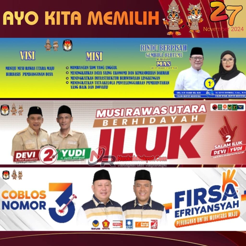TEBARKAN.COM – MURATARA – Pemilihan Kepala Daerah (Pilkada) Serentak berlangsung pada Rabu, 27 November 2024. Setiap pasangan calon (paslon) mempunyai visi misi sebagai tujuan yang akan dicapai apabila terpilih menjadi pemimpin daerah.