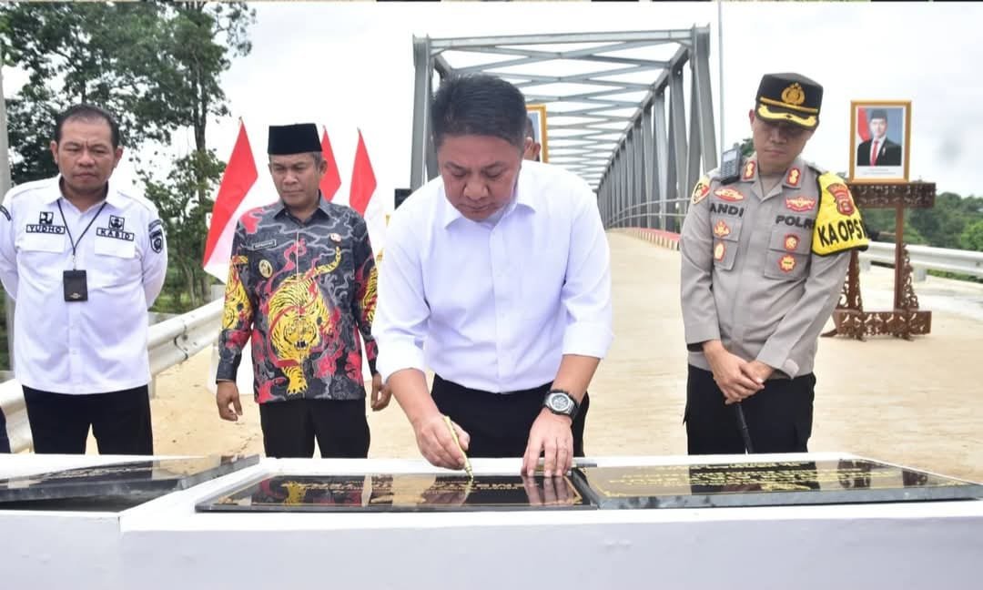 “Hari ini kita meresmikan jembatan sumgai air keruh dan jembatan air teras , Alhamdulillah mudah-mudahan ini menjadi layanan yang bisa bukan membuat sekedar nyamam berlalulintas masyarakat tpi cost transportasi untuk harga komuditas yang dihasilkan disini menjadi terpangkas, Sehingga masyarakat harga yang lebih murah,” Kata Gubernur.
