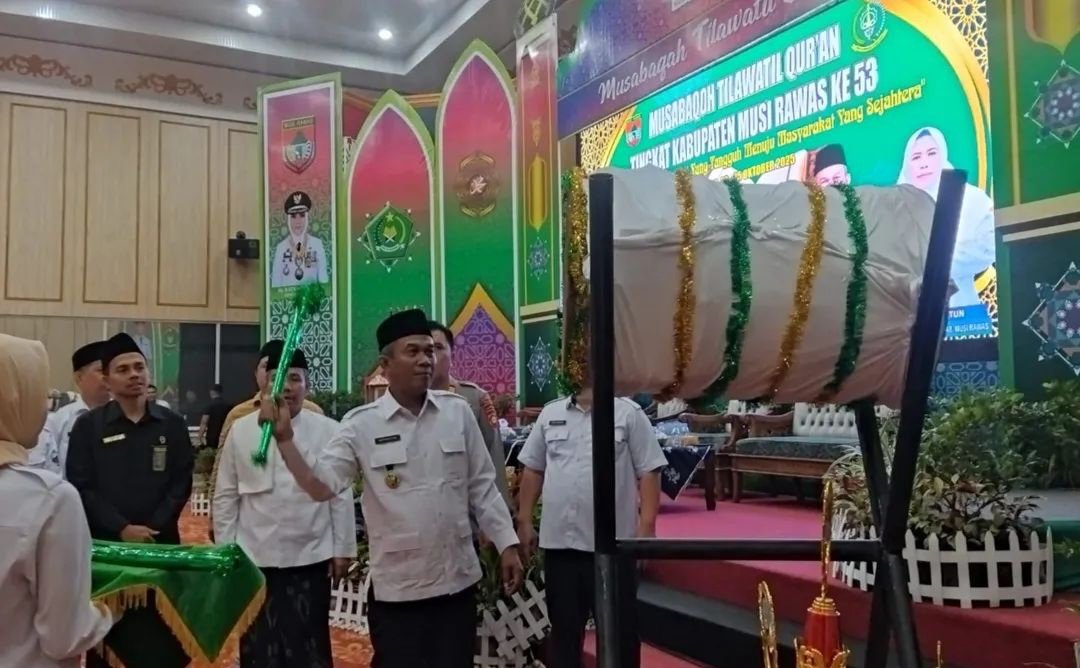 TEBARKAN – MUSI RAWAS – Wakil Bupati Musi Rawas H. Suprayitno secara resmi membuka kegiatan Musabaqah Tilawatil Qur’an (MTQ) Ke-53 Tingkat Kabupaten Musi Rawas Tahun 2025 di Gedung Auditorium Pemkab Musi Rawas pada Rabu, (22/10/2025).