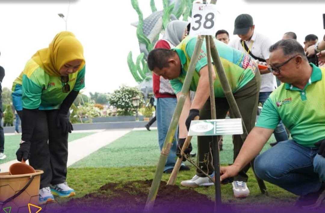 Tebarkan – Surabaya – Sebagai bentuk dukungan terhadap pelestarian lingkungan, Wali Kota Pagar Alam Ludi Oliansyah bersama Ketua TP PKK Kota Pagar Alam Hera Parianti Ludi melaksanakan penanaman pohon di Taman Suroboyo, pada Jum’at pagi (09/05/2025).
