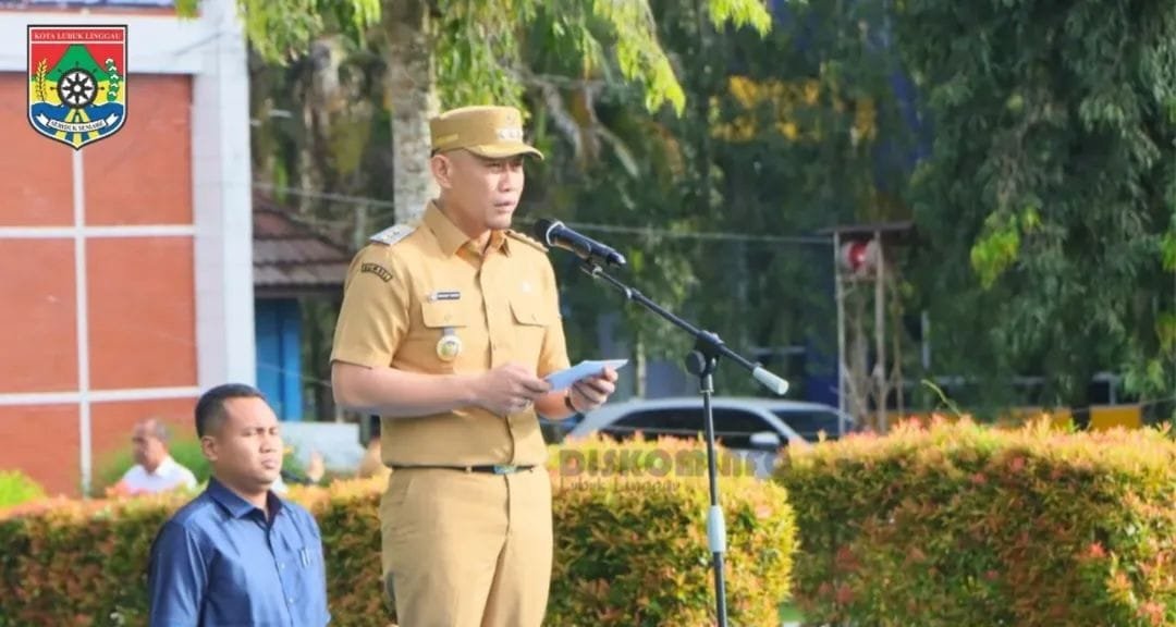 TEBARKAN – LUBUKLINGGAU –Wali Kota Lubukpinggau, H Rachmat Hidayat pimpin apel bersama seluruh jajaran Pemerintah Kota (Pemkot) Lubuklinggau pada hari pertama masuk kerja setelah cuti bersama hari raya Idul fitri 1446 H, Selasa (8/4/2025).